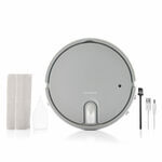Tämä ladattava robotti-imuri on ihanteellinen täydelliseen ja perusteelliseen siivoukseen sen viiden eri toiminnon ansiosta: se imuroi, lakaisee, moppaa, kostuttaa ja desinfioi. Kosketuspainike on/off, kaksi pestävää moppia, annostelupullo, minipuhdistusharja ja USB-johto.