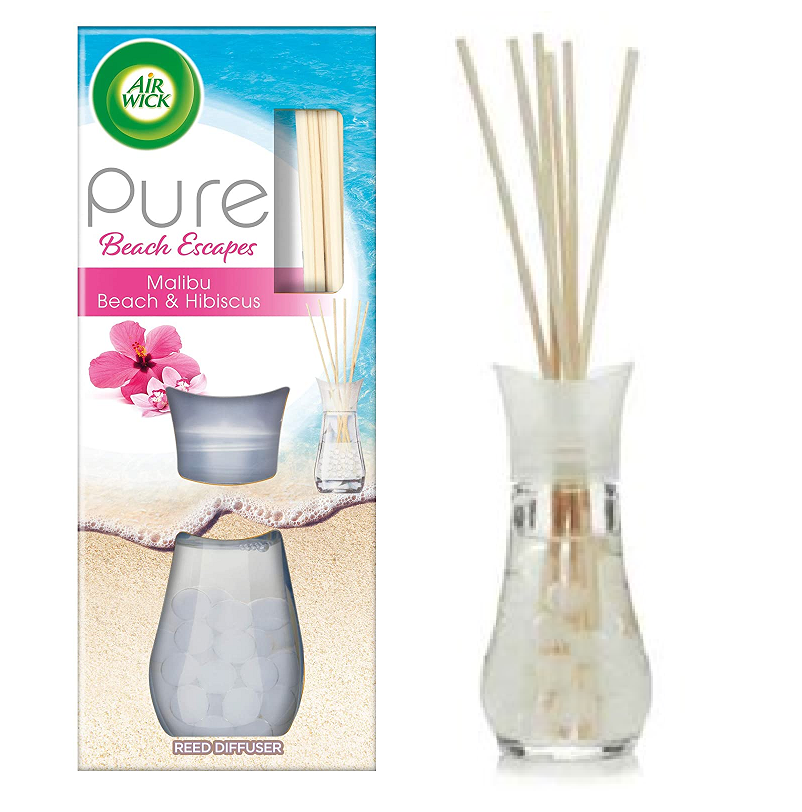 Air Wick Fragrance tarttuu Malibu Beachin ja Hibiscuksen tuoksulla, joka raikastaa kotia.