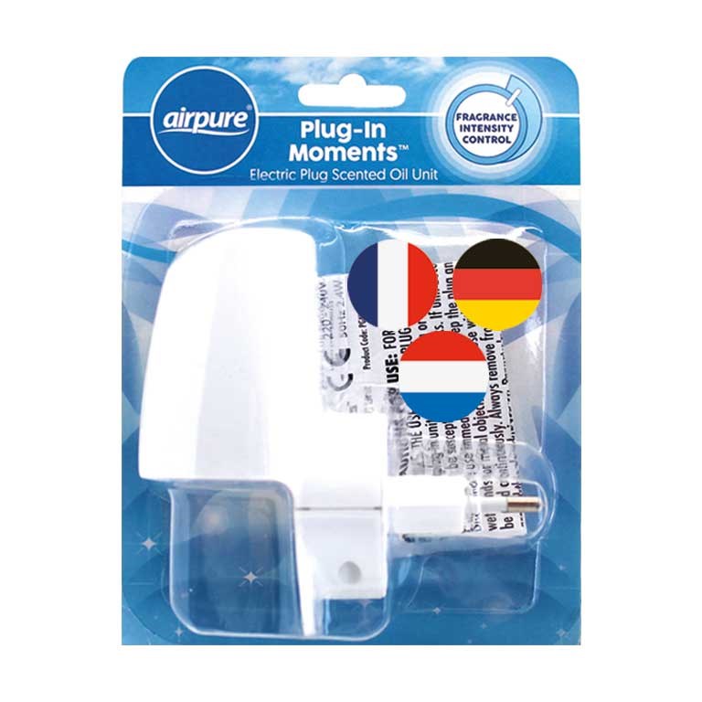 Pakkaus sisältää AirPure Plug-in Moments Unit - sähköinen annostelija eteerisille öljyille