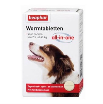 Beaphar matolääke koirille - All-in-one - 2,5-40 kg - 4 kpl. Beapharin All-in-One-matotabletit sopivat yli viiden kuukauden koirille ja 2,5-40 kg painaville koirille.