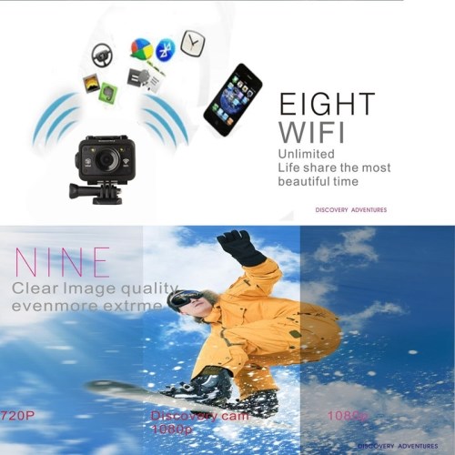 Discovery DS100 FHD 1080p 1,5 tuuman teräväpiirton värinäyttö WiFi Edition -urheilukamera langattomalla kaukosäätimellä, 170 asteen HD-laajakulmalinssi, 60 metrin vesitiivis