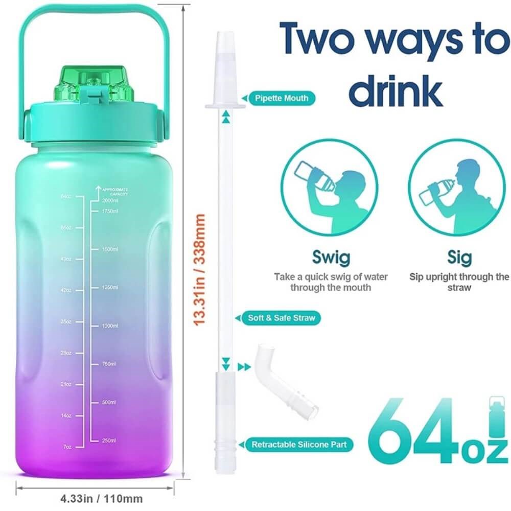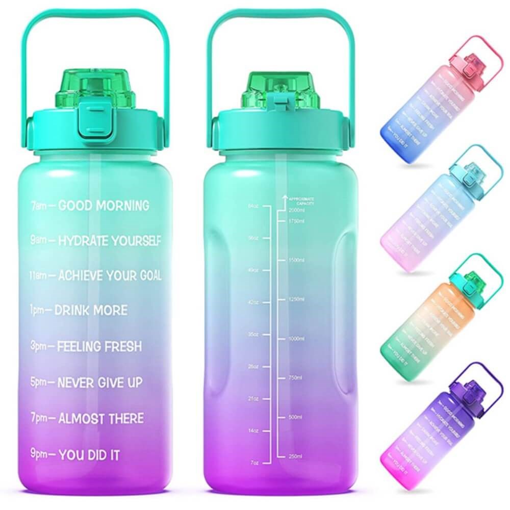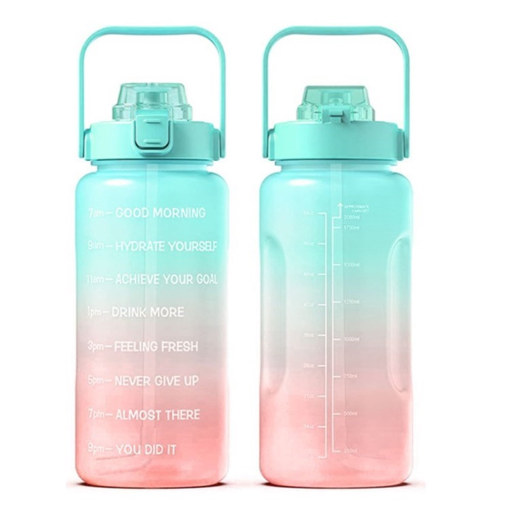 Fitness-vesipullo Pillillä - Ei BPA- 2000 ml - Persikka/Vihreä