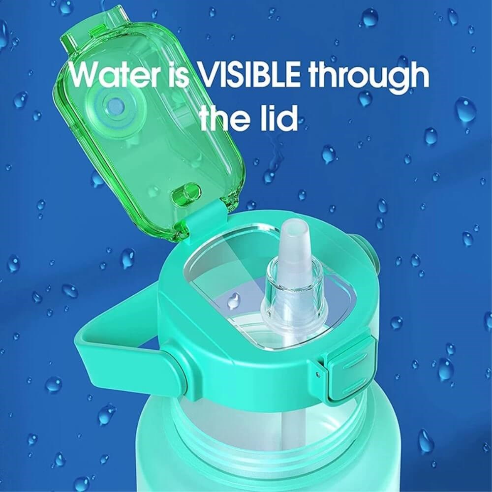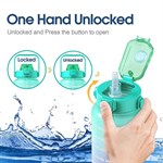Patentoidun jousikannen avausrakenteen ansiosta tarvitset vain yhden käden kannen avaamiseen juomaan vettä. Jokainen kansi on varustettu turvalukolla. Paina ylös lukitaksesi painikkeen ja alas avataksesi lukituksen. Tämä lukko estää kantta avautumasta vahingossa.