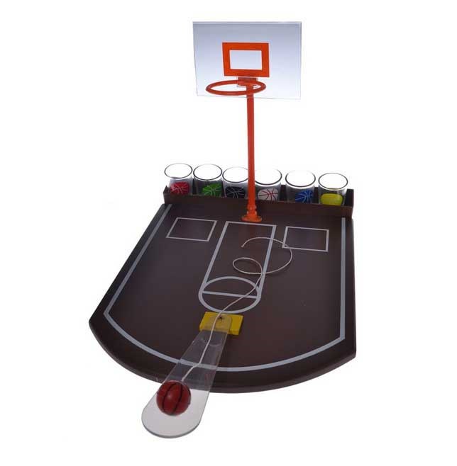Koripallo Juomapeli nauttiaksesi muutamasta juomasta ystävien kanssa pienessä kilpailussa minikoripallokentällä
