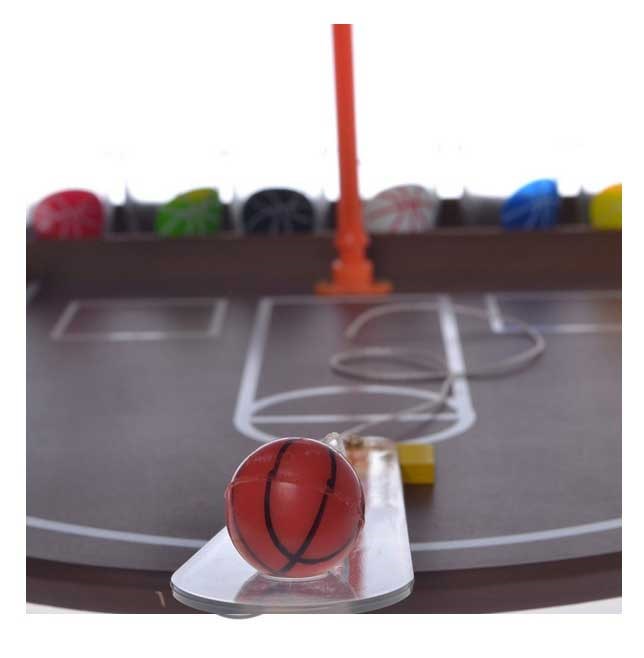 Paketti sisältää ripustimeen kiinnitetyn minikentän ja pallon, takalevyn, uran ja 6 lasipalaa