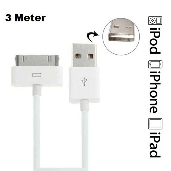 Kaksipuolinen iPod / iPhone / iPad - USB-datakaapeli 3 metriä korkealaatuista