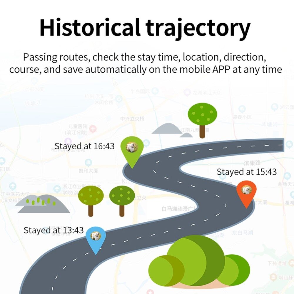 Elektroninen hälytin. Kun lemmikki poistuu asetetulta turvalliselta toiminta-alueelta (100m-5000m), paikannin lähettää APP:lle hälytysviestin, joka estää tehokkaasti lemmikin eksymisen.