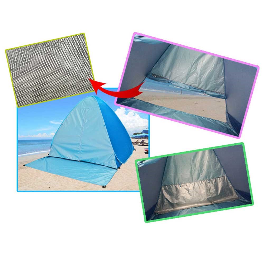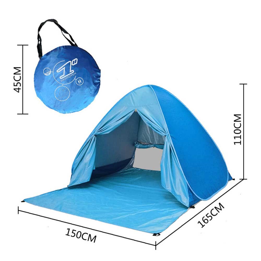 Kevyt teltta UV 50+ suojaavaa polyesteriä, joka sopii täydellisesti rannalle, kun aurinko on korkealla ja tarvitset varjoa. Samalla se sopii ihanteellisesti rannalle, festivaaleille ja kalastusretkelle ja voit säilyttää vaatteesi, tavarasi ja juomasi varjossa tai sateelta suojassa.