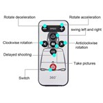 Tässä jalustassa on 360°:n pyörimisalusta, jossa on 3 panorointinopeutta 15, 30 ja 60 minuuttia ja 10 sekunnin aikasarja, ja sitä ohjataan elektronisesti kaukosäätimellä. Kaukosäätimessä on vain ON/OFF-painike, ja se voidaan liittää älypuhelimeesi Bluetoothin kautta Android 3.0:ta tai iOS 4.0:aa ylittävillä järjestelmillä.
