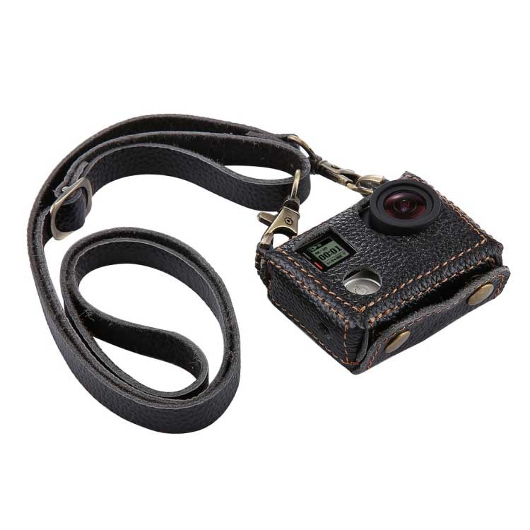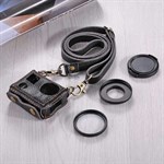Nahkainen PULUZ®-laukku 40,5 mm:n UV-linssillä GoPro HERO 4:lle - musta. Suojaava kameralaukku kaulahihnalla. Kauniisti viimeistelty muotoilu aidosta lehmännahasta ulkoisilla tikkauksilla ja hienoilla yksityiskohdilla GoPro HERO 4:lle.