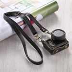 Laukku sulkeutuu kameran ympärille painonapeilla alareunassa, ja siinä on leikkaukset kaikille painikkeille, ja se voi pysyä kamerassa, kun otat kuvia.