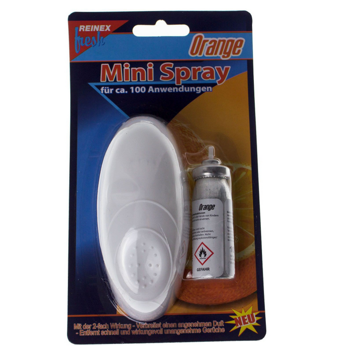 Reinex Mini Ilmanraikastin - Sisältää oranssin täyttöpakkauksen Oletko kyllästynyt hajuun? Hanki raitista Luft koko päivän Reinex Mini-ilmanraikastimella Luftfrisker.