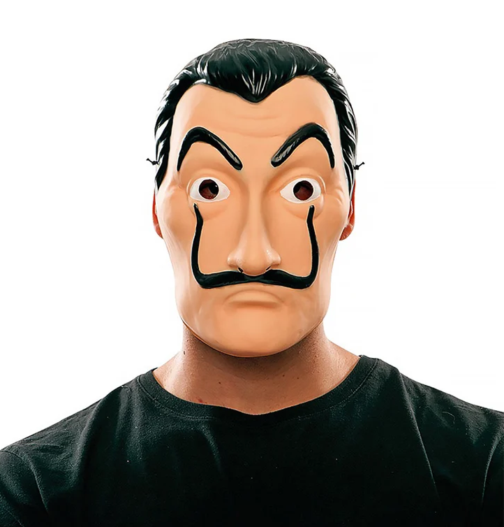 Salvador Dali Maske - Papirhuset - La Casa de Papel Tämän kauniin muovinaamion avulla voit elää yhden "La Casa de Papel" -sarjan ryöstäjien roolista.
