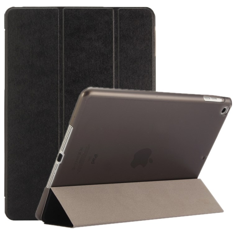 Saat Silkkinen kolminkertainen keinonahkakotelo iPad Airille ja iPad 9,7" - musta