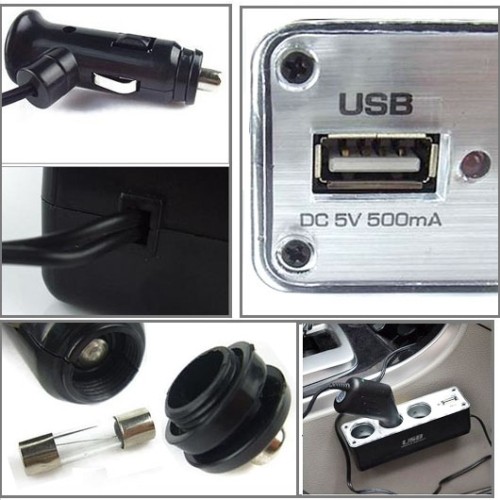 USB-laturi auton tupakansytyttimelle - 5V/500Ma. Sopii matkapuhelimelle, iPodille, GPS:lle ja PDA:lle.