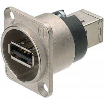 Neutrikin käännettävä USB-sukupuolenvaihtaja, joka on asennettu standardisoituun D-muotoiseen koteloon, ja kestävät patch-kaapelit ratkaisevat tämän ongelman.